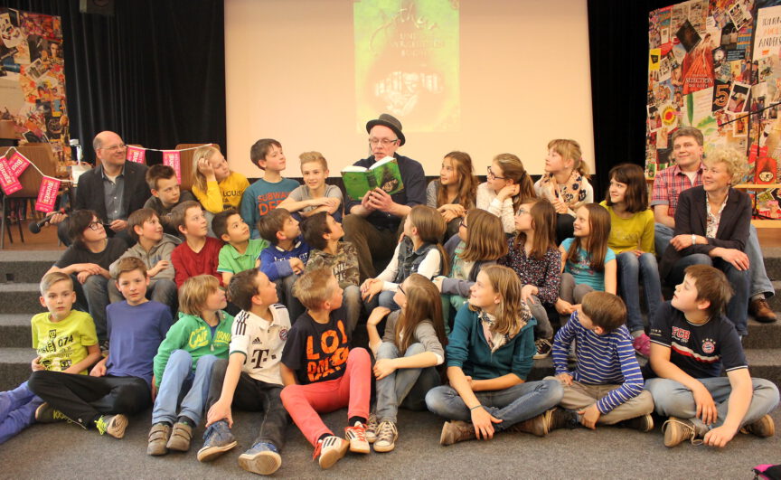 Kall-Steinfeld — Auf die Frage einer Fünftklässlerin, wie er denn auf seine vielen spannenden Ideen komme, gab der Schriftsteller Gerd Ruebenstrunk gleich mehrere Antworten: “Zum einen durch die vielen Bücher, die ich lesen — wie alle Autoren, die ich kenne.” Dazu komme seine Fantasie und ein einfacher Trick: “Man fragt sich ständig “was wäre, wenn…””…