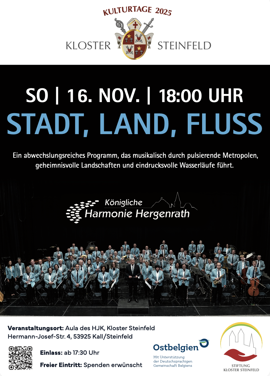Musi­ka­li­scher Part­ner ist die König­li­che Har­mo­nie Her­gen­rath, ein sin­fo­ni­sches Blas­or­ches­ter aus Ost­bel­gi­en, das beim Ein­stu­fungs­wett­be­werb 2024 mit 96 % in der Höchst­stu­fe aus­ge­zeich­net wur­de.