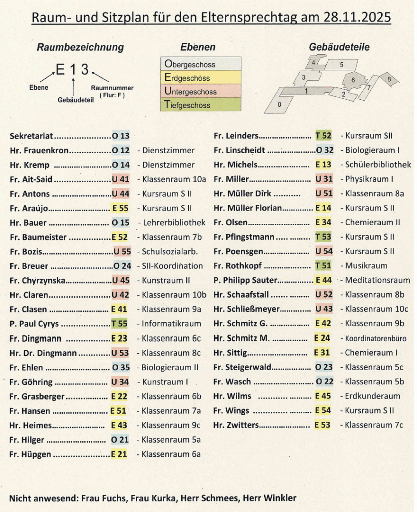 Liebe Eltern, diesen Freitag sind wieder Sprechzeiten bei den Lehrer:innen am HJK. Von 14:30 bis 19:00 Uhr können mit und teils auch ohne Termin klärende und informative Gespräche geführt werden. Hier der Raumplan dazu.