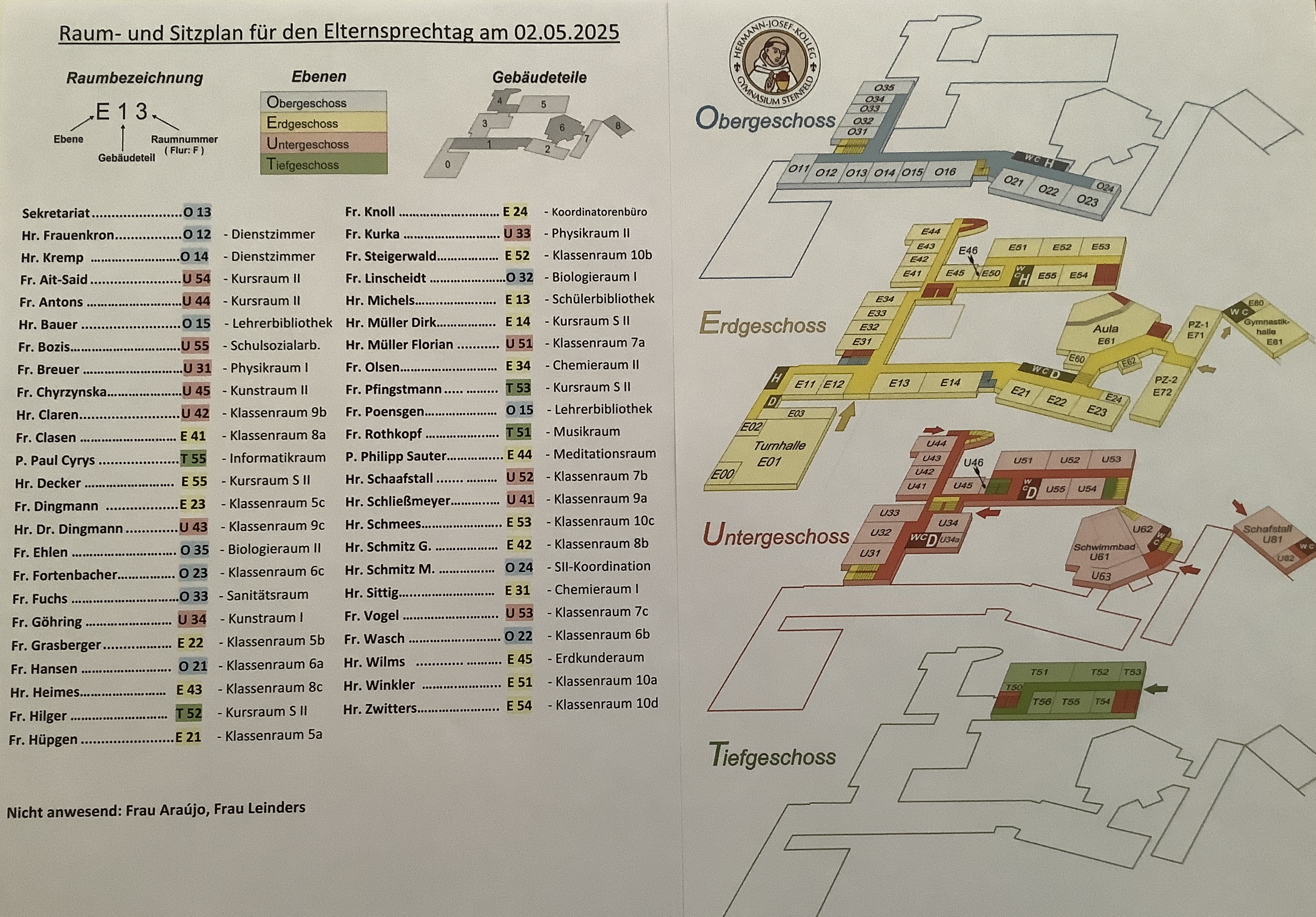 Gleich nach den Osterferien ist freitags von 15 — 19 Uhr Elternsprechtag. Nutzen Sie gerne die Gelegenheit, mit den Lehrkräften zu sprechen. Der Raumplan ist HIER per Klick zu finden.