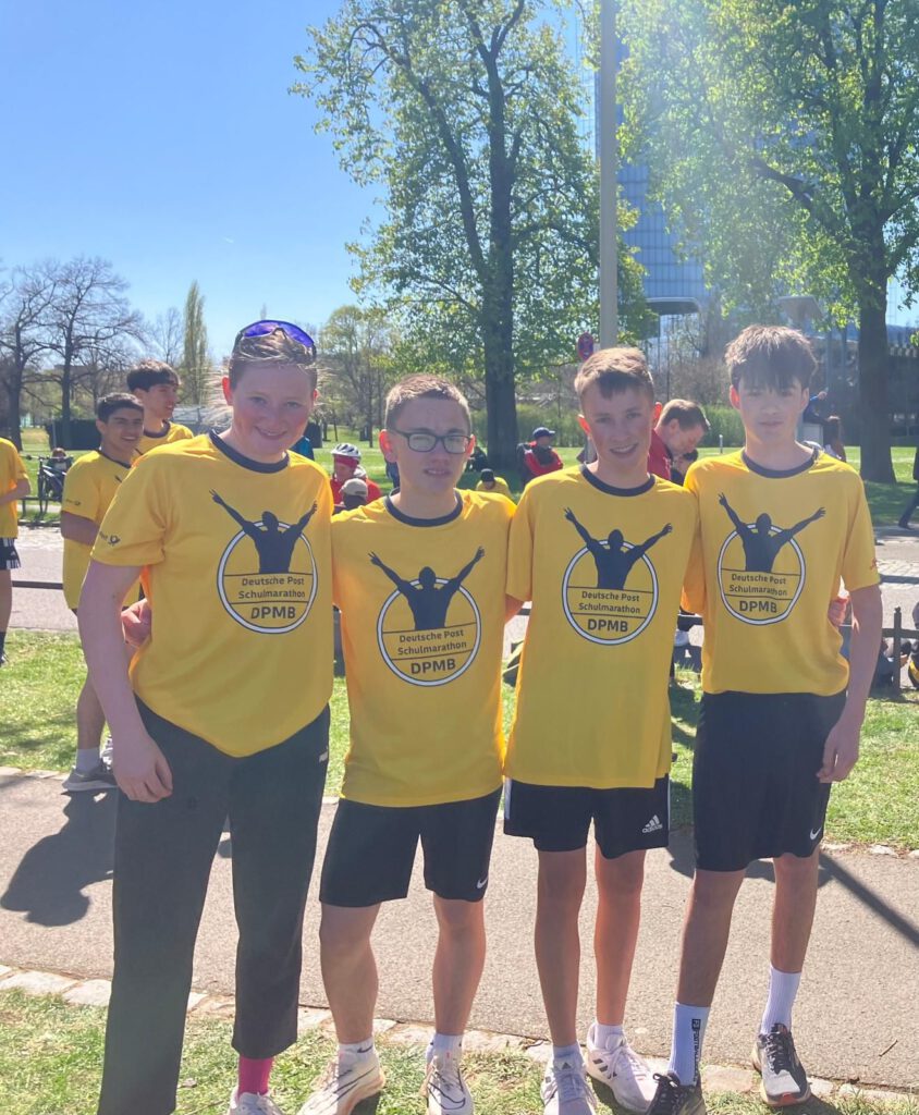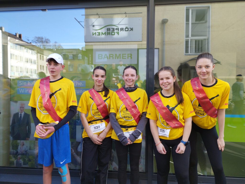 Am Sonntag, 6. April 2025, nahmen fünf Schülerstaffeln und eine Lehrerstaffel unserer Schule am Staffelmarathon in Bonn teil. Die Staffeln setzten sich aus Schüler*innen der Jahrgangsstufe 5 bis zur Q2 zusammen und legten in einem Sechserteam eine Marathondistanz zurück. Durch das Durchhaltevermögen und das gegenseitige Anfeuern durch Mitschüler*innen, Eltern und Lehrkräfte haben alle Schüler*innen tolle Leistungen gezeigt, uf die sie sehr stolz sein können. So kamen alle unsere Teams in guten Zeiten zwischen 3:36:19h und 4:09:51h erfolgreich ins Ziel! Unser Frauenteam landete in der Wertungsklasse W90 sogar auf Platz 2 und unser Männerteam in der Klasse W89 auf Platz 7!