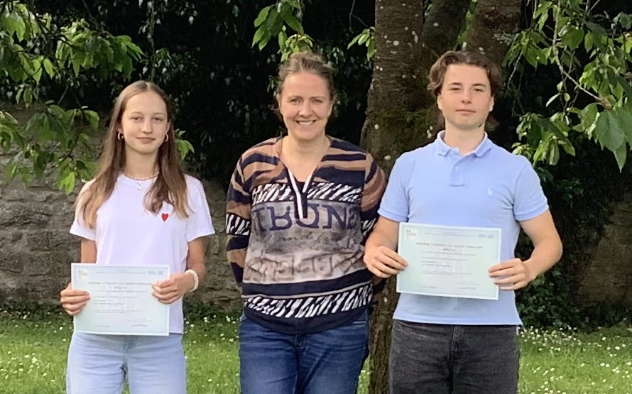 Wir gra­tu­lie­ren Anna Keme­rer und Luis Rud aus der Klas­se 9b nach­träg­lich ganz herz­lich! Bei­de haben sich inten­siv auf die DELF-Prü­fun­gen vor­be­rei­tet und das ange­streb­te Niveau A2 mit Erfolg erreicht.