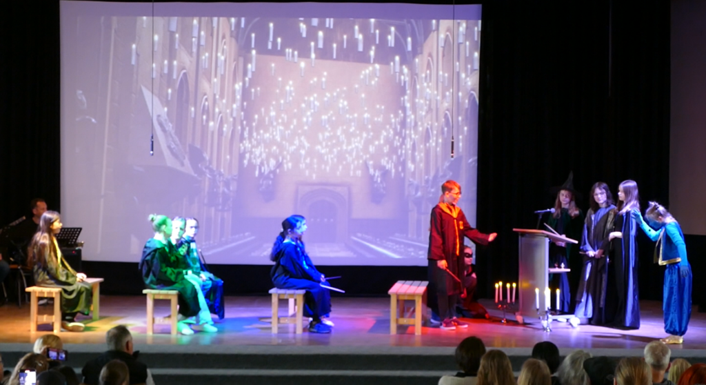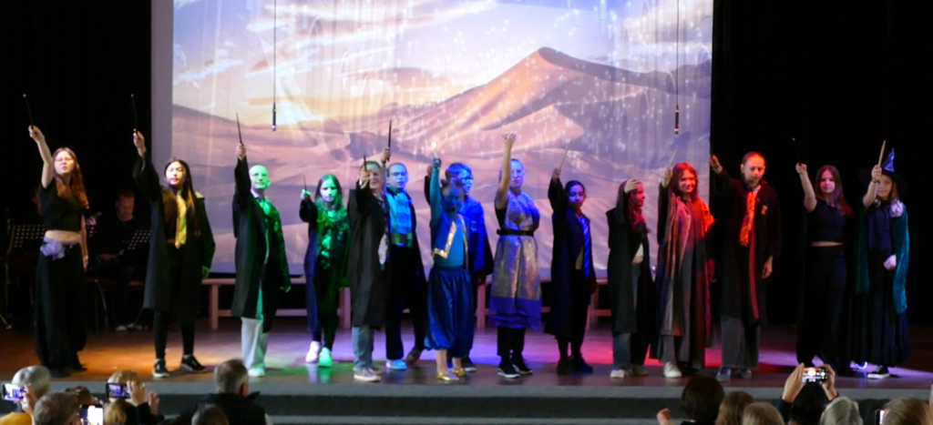 “Das Musical „Harry Potter und die Wunderlampe“ hat uns sehr gut gefallen. Besonders toll fanden wir, wie kreativ alles gestaltet war. Die Bühne, die Kostüme und die Lichter waren schön gemacht und haben gut zur Geschichte gepasst. Auch der Wechsel zwischen Text und Liedern war gut abgestimmt – es war nie zu viel oder zu wenig Musik. Die Geschichte des Musicals war wie eine Fortsetzung der echten Harry-Potter-Reihe, mit neuen Ideen. Allerdings fanden wir die Handlung manchmal ein bisschen verwirrend, vor allem am Anfang. Wenn man sich mit Harry Potter nicht so gut auskennt, versteht man vielleicht nicht alles sofort. Vielleicht wäre es besser gewesen, wenn es nur eine Hauptgeschichte gegeben hätte, ohne so viele Nebenhandlungen. Trotzdem hat uns das Musical sehr gefallen, und wir würden es auf jeden Fall weiterempfehlen. Es war spannend und witzig zugleich.” (Sophia und Lara, 9c)