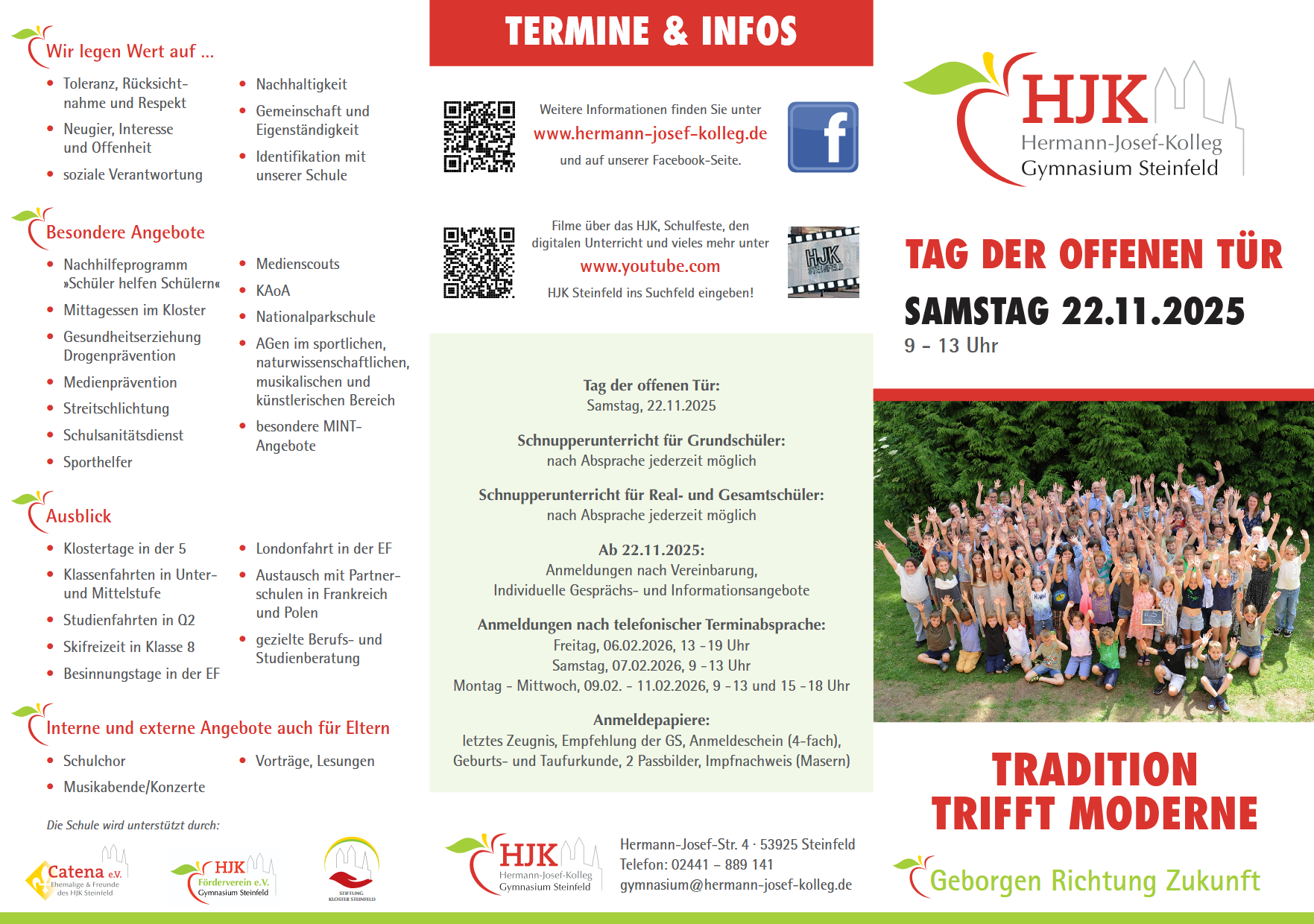 Weitere Informationen entnehmen Sie bitte unserem Flyer, hier als PDF oder Bild, am Tag der offenen Tür auch in gedruckter Form.