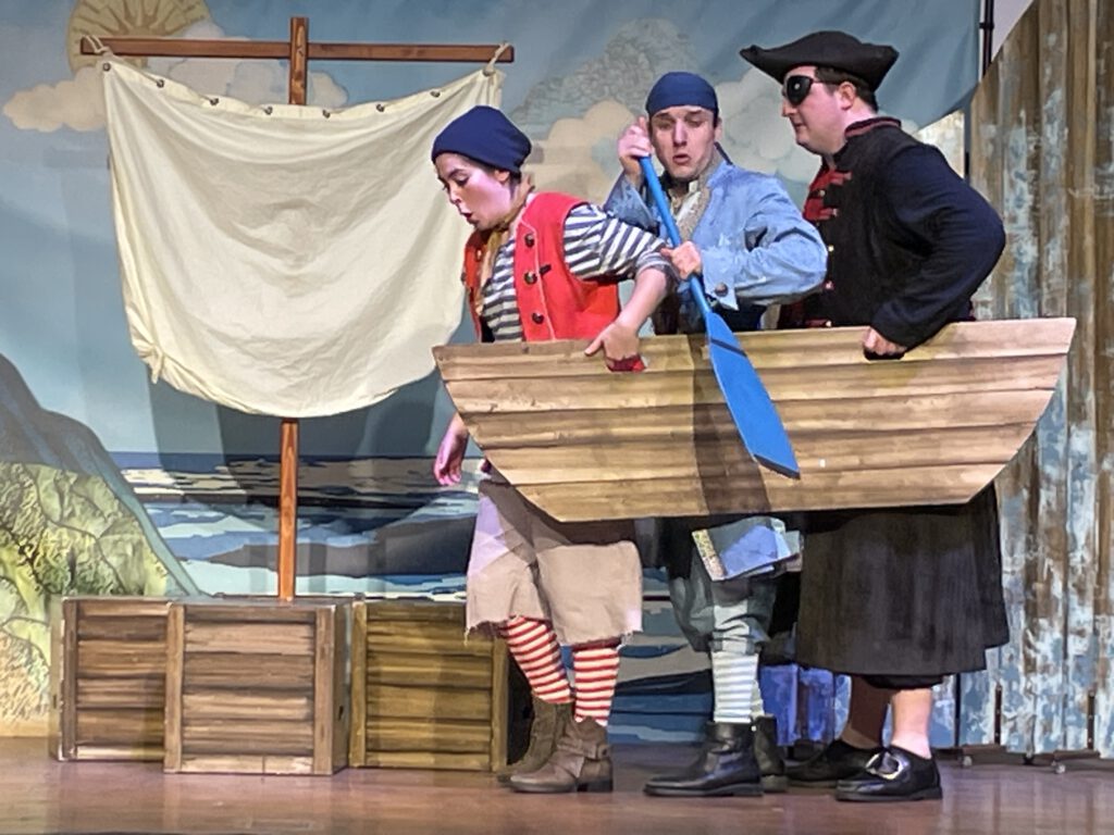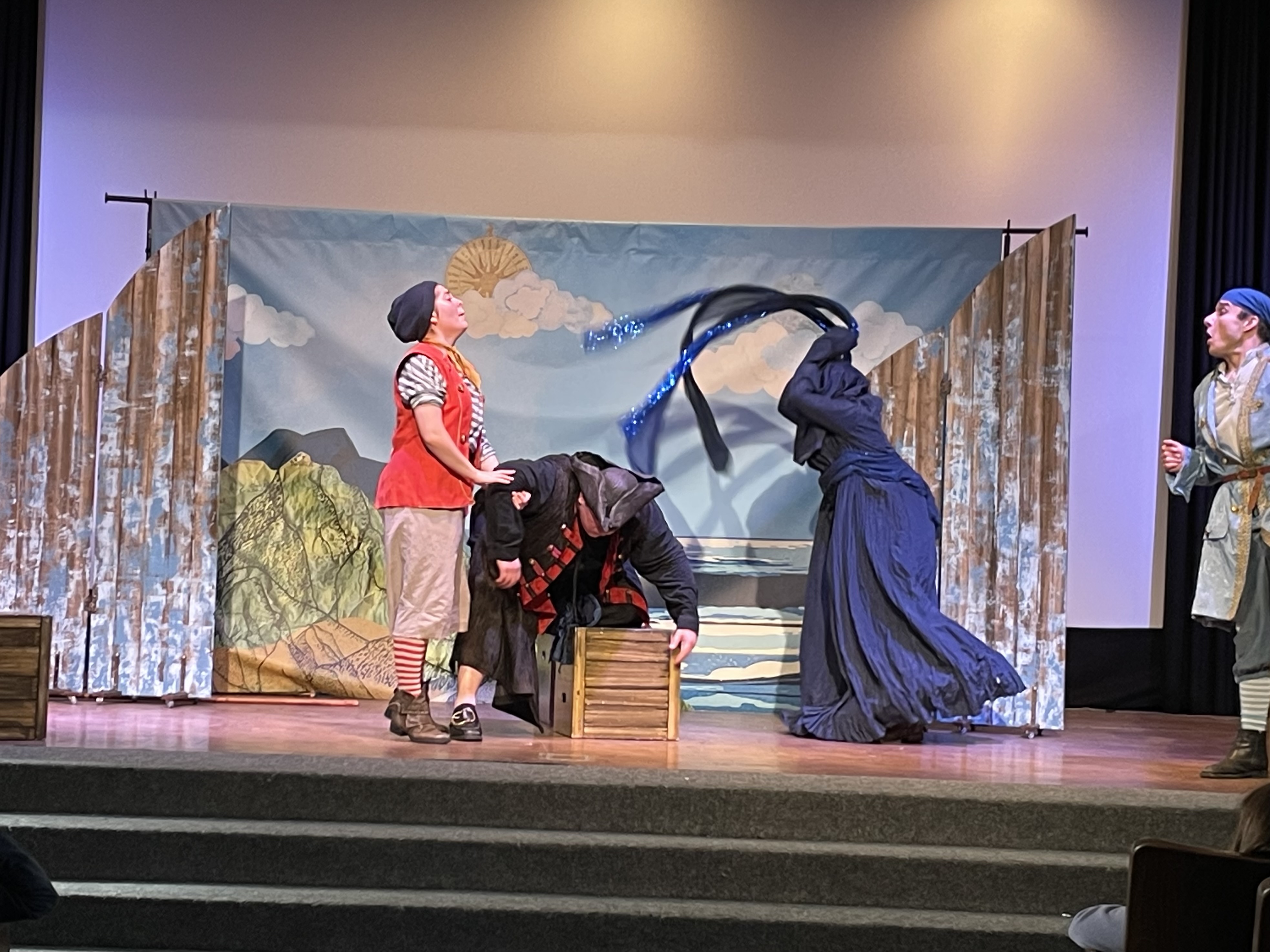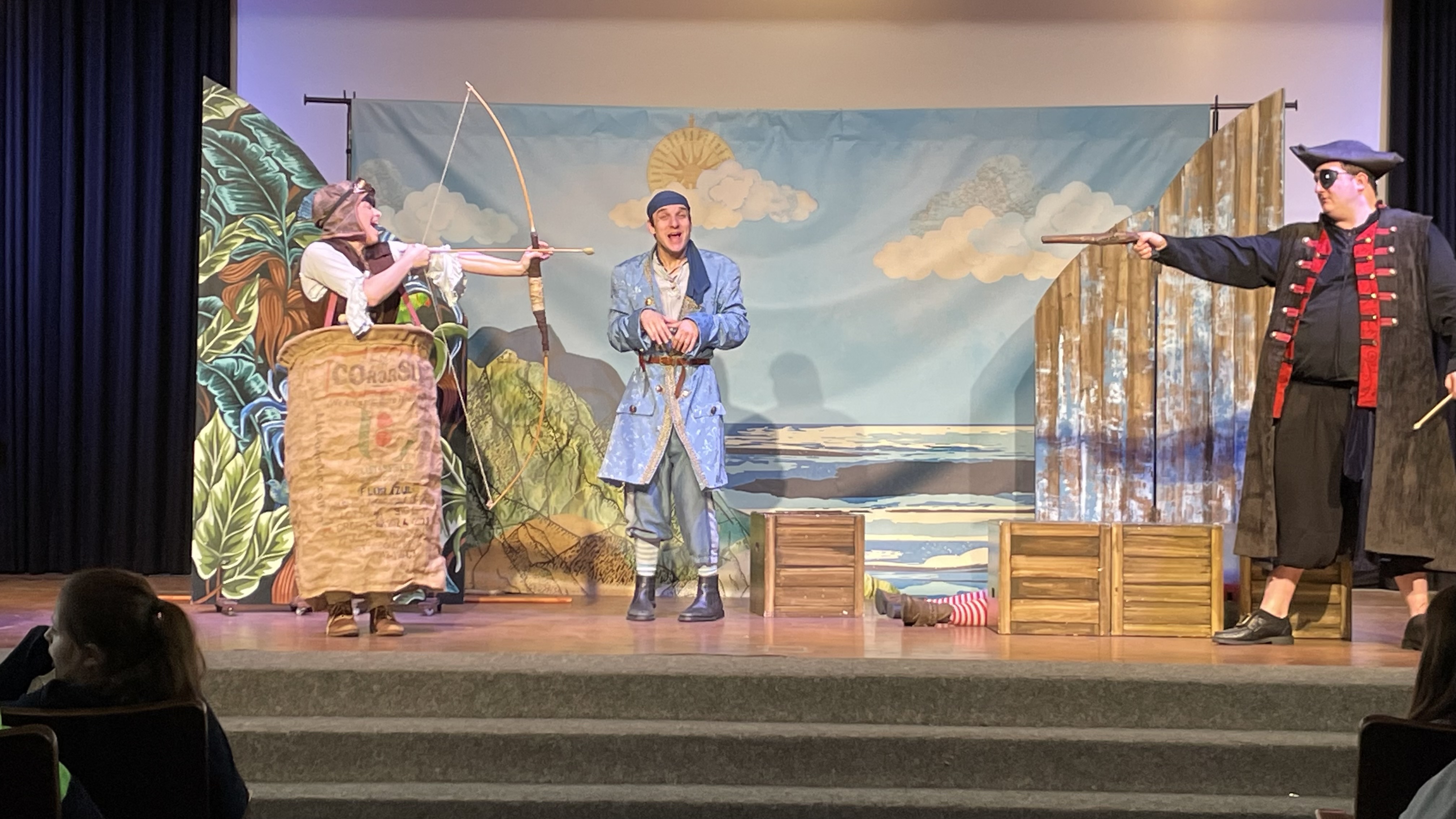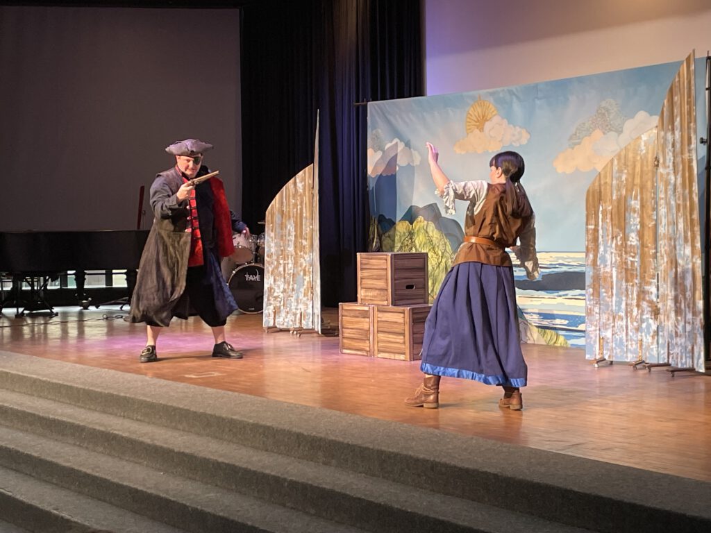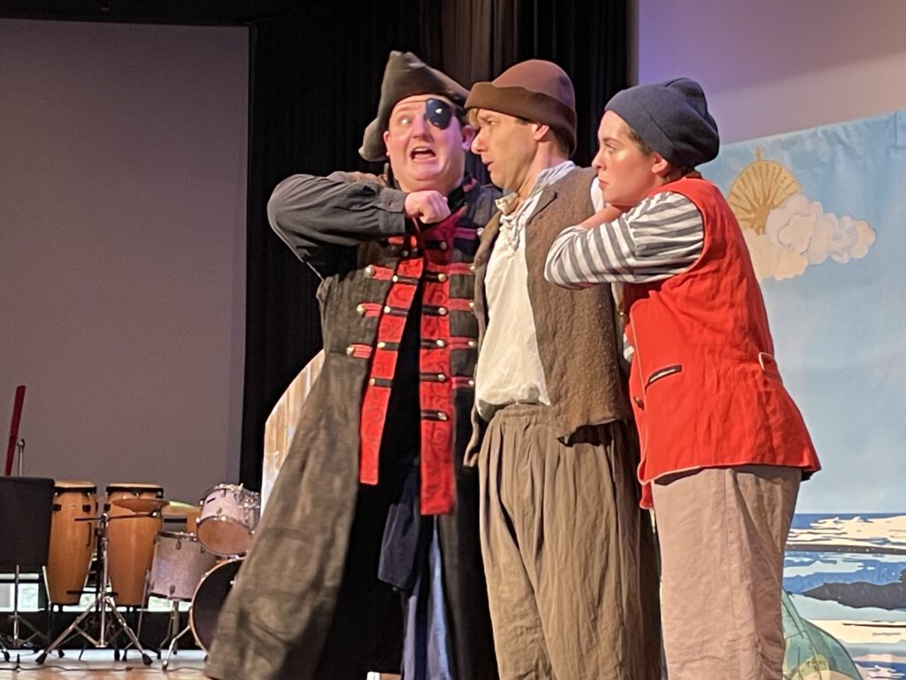 Trotz mancher sprachlichen Herausforderung, gerade für die Stufe 5, konnten die Kinder dank der deutlichen Körpersprache der Schauspieler und der einfachen Handlung dem Treiben auf der Bühne fasziniert folgen. Auch das intensive Einbeziehen der Kinder durch Mitmachmöglichkeiten beim Entführen eines armen Schafhirten auf ein Piratenschiff, sorgte für viel Abwechslung und hielt die Kinder über die Zeit hinweg „auf Kurs“.