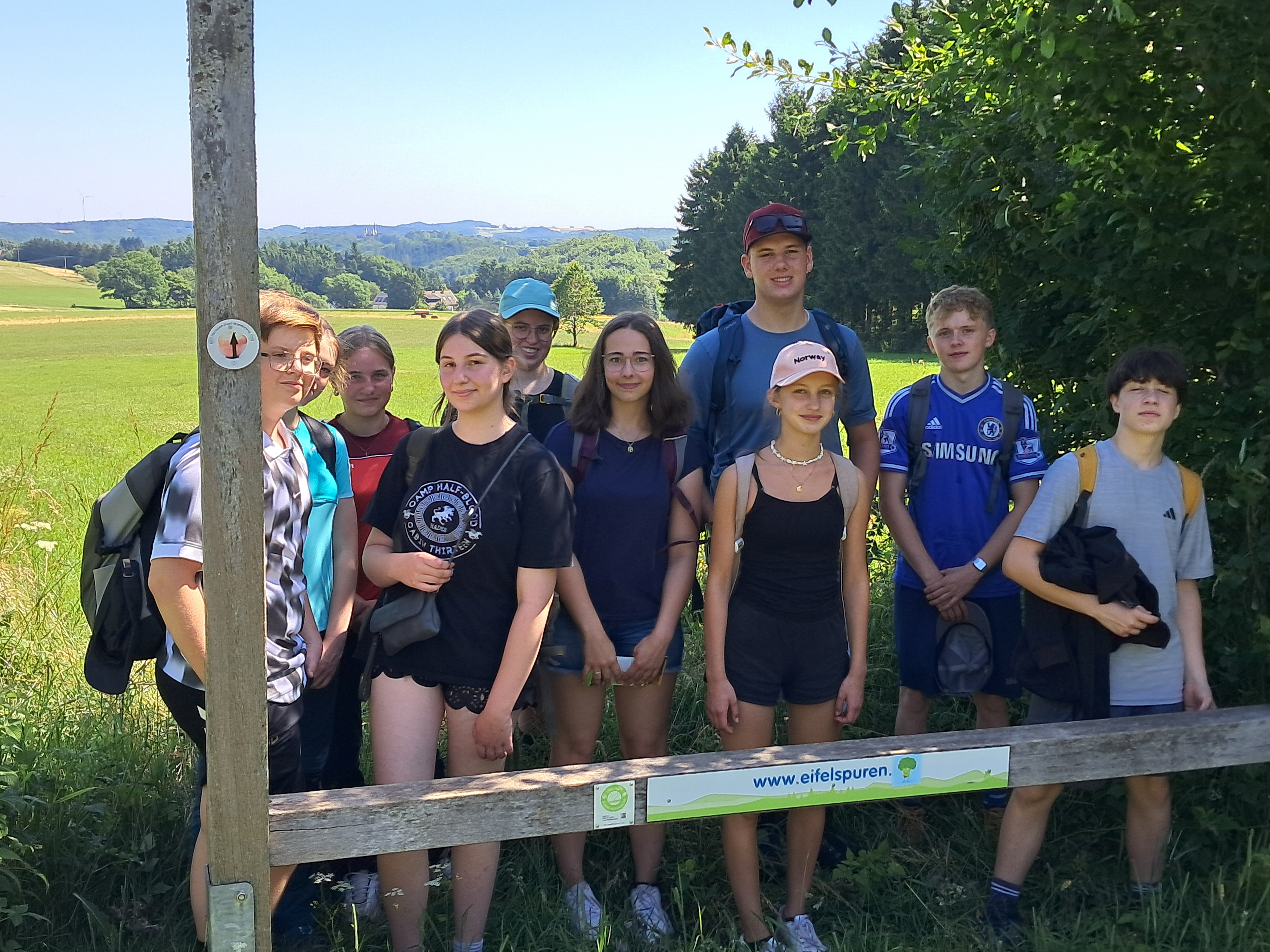 Am 30. Juni 2025 fand die dies­jäh­ri­ge Pro­be­ex­pe­di­ti­on im Rah­men des Duke of Edinburgh’s Inter­na­tio­nal Award statt. Zehn enga­gier­te Schüler*innen der Mit­tel­stu­fe wan­der­ten gemein­sam mit Herrn Schließ­mey­er und Schul­seel­sor­ger Pater Phil­ipp rund 10 Kilo­me­ter durch die Kre­ke­l­er Hei­de, nach­dem eine ursprüng­lich geplan­te Rou­te in Erkens­ruhr kurz­fris­tig aus orga­ni­sa­to­ri­schen Grün­den ver­legt wer­den muss­te. Alle Betei­lig­ten erwie­sen hier bemer­kens­wer­tes Impro­vi­sa­ti­ons­ta­lent.